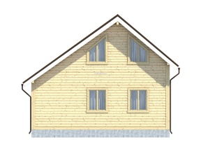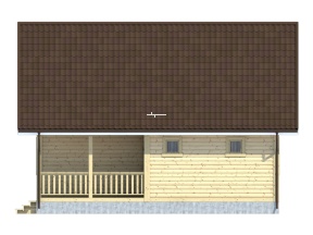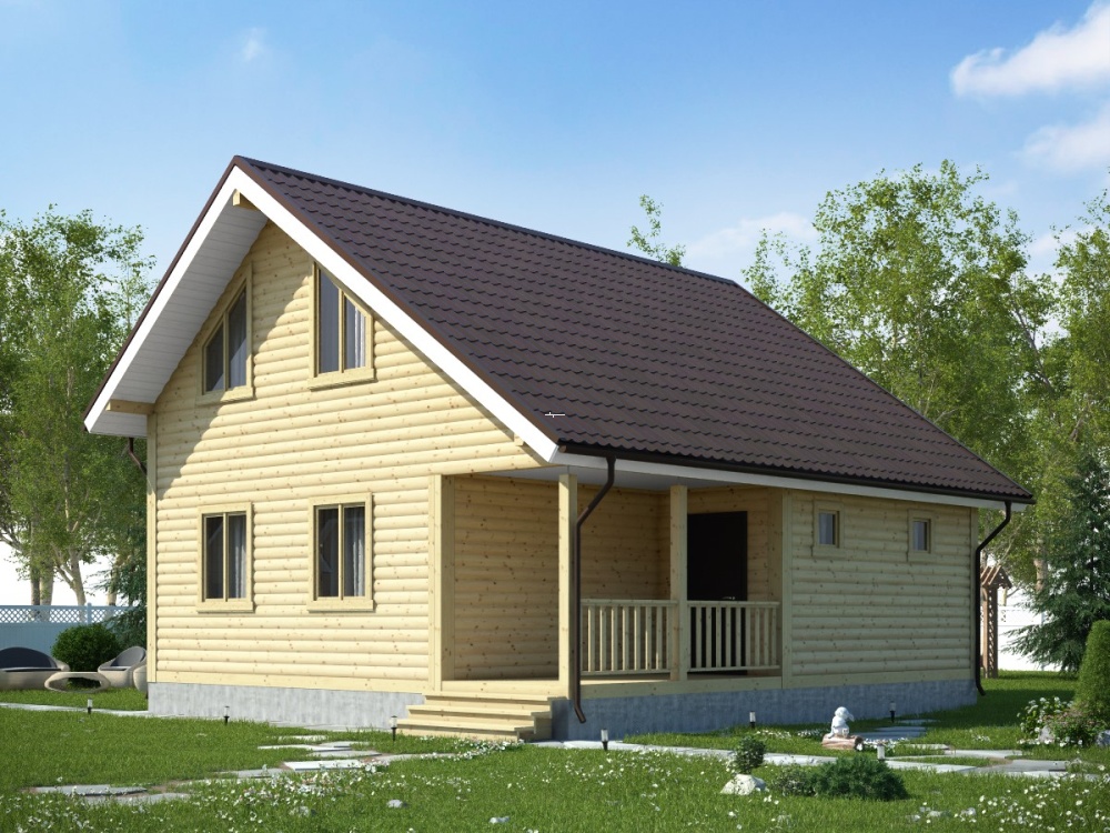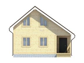 Проект полутораэтажного дома из бруса с маленькой террасой – востребованный вариант коттеджа для загородного проживания.