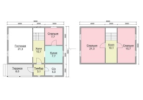 Деревянный дом общей площадью 102 кв.м. и размером 8х9 м. обеспечит потребности семьи из нескольких человек.