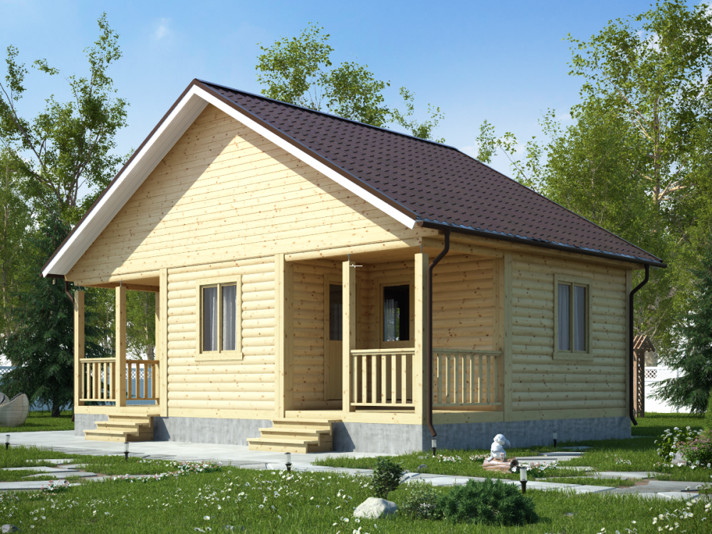 Проект одноэтажного дома из бруса с – востребованный вариант коттеджа для загородного проживания.