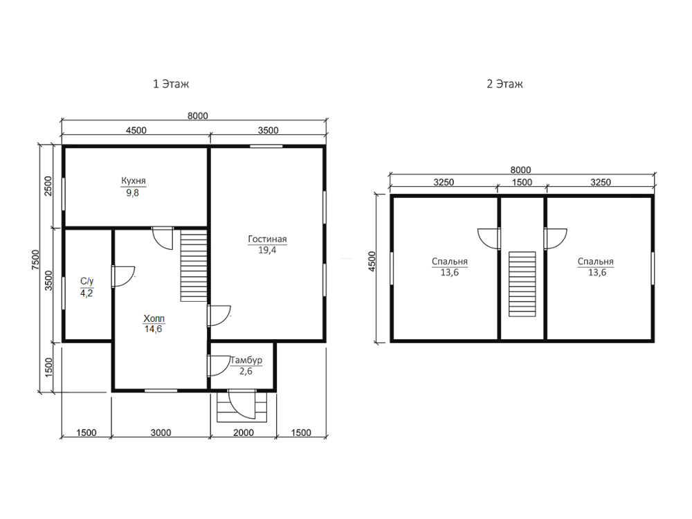 | Под усадку (без отделки) | 7,5х8 | Cруб дома 190х140 мм | 1710500 | Заказать |