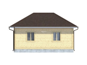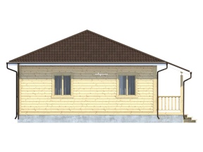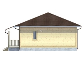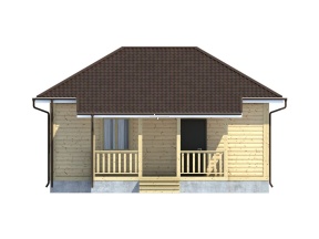 Проект одноэтажного дома из бруса с маленькой террасой – востребованный вариант коттеджа для загородного проживания.