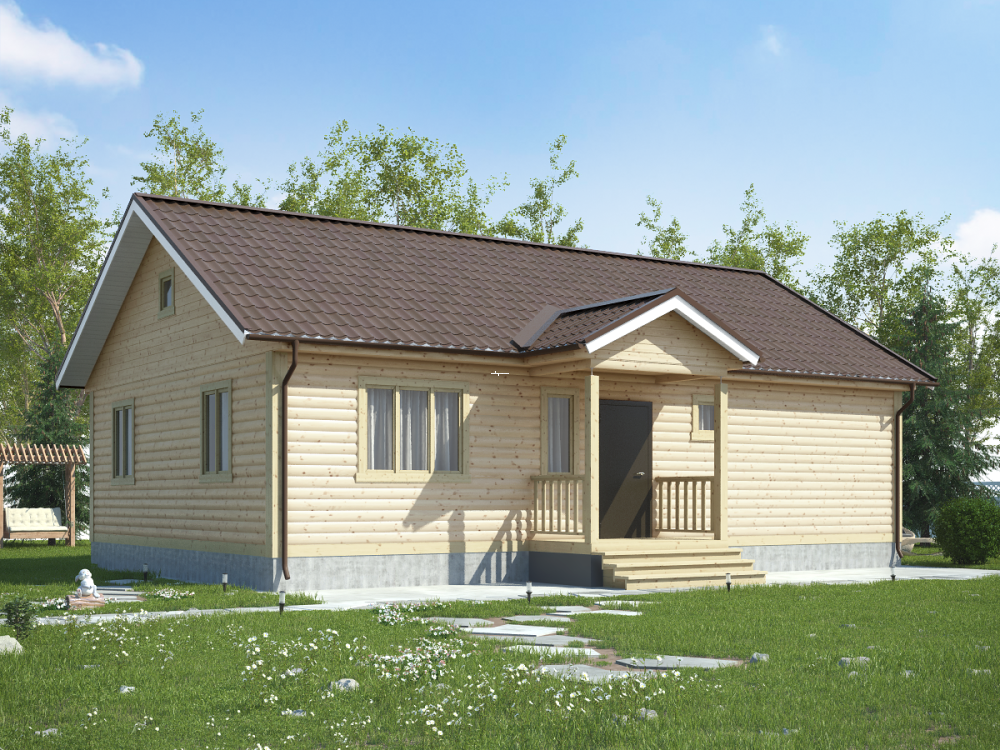 Проект одноэтажного дома из бруса с – востребованный вариант коттеджа для загородного проживания.