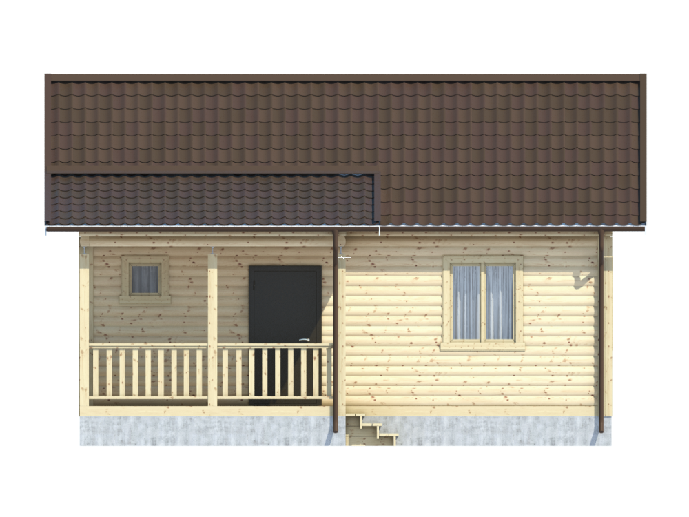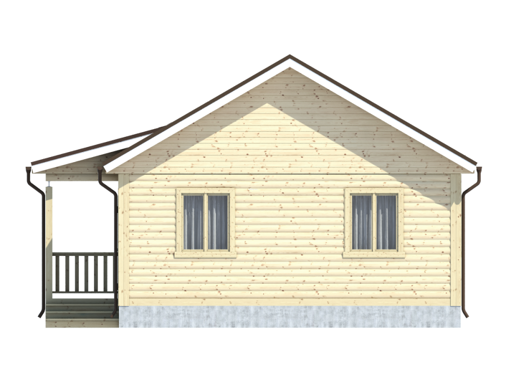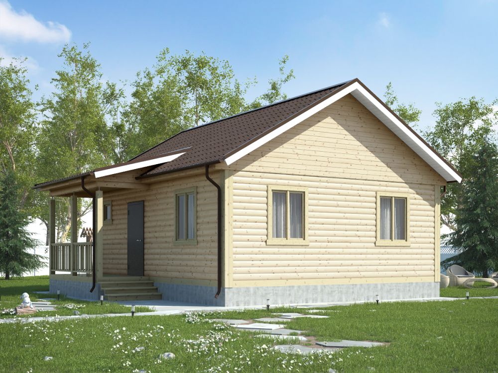 Проект одноэтажного дома из бруса с террасой – востребованный вариант коттеджа для загородного проживания.