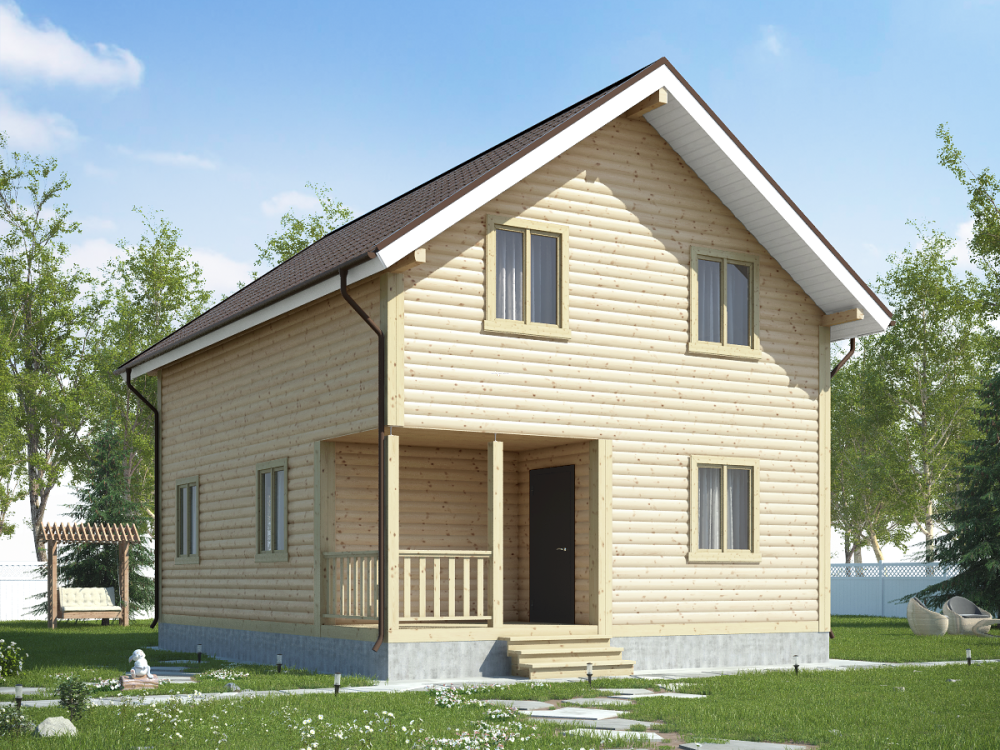 Проект полутораэтажного дома из бруса с – востребованный вариант коттеджа для загородного проживания.