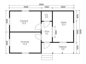 Общая площадь застройки составляет кв.м., размер дома – 6х9 м..