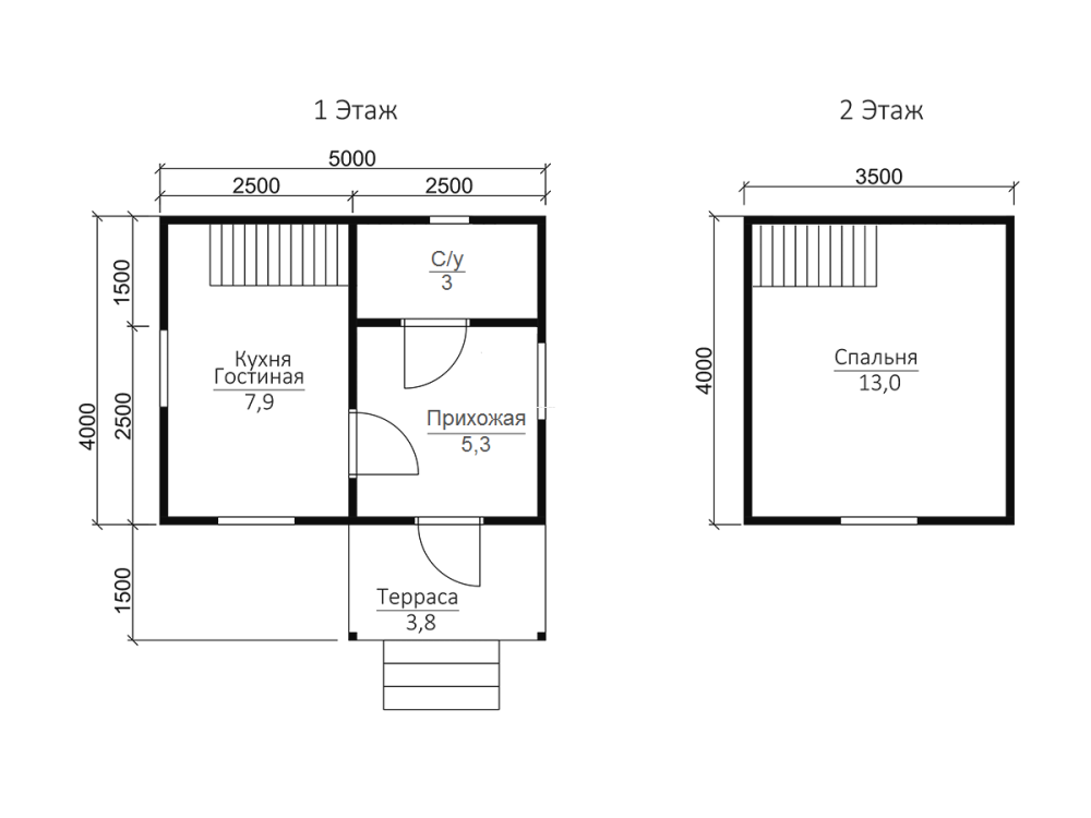 Общая площадь застройки составляет 30.1 кв.м., размер дома – 5х4 м..