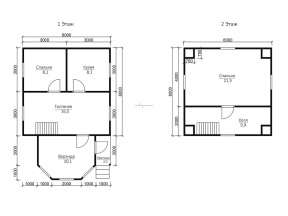 Общая площадь застройки составляет 74 кв.м., размер дома – 6х9 м..