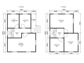 Общая площадь застройки составляет кв.м., размер дома – 6х8 м..