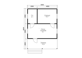 Общая площадь застройки составляет 32.8 кв.м., размер дома – 6х8 м..