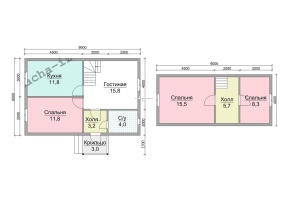 Общая площадь застройки составляет 76.1 кв.м., размер дома – 6х9 м..