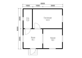Общая площадь застройки составляет 36 кв.м., размер дома – 6х6 м..